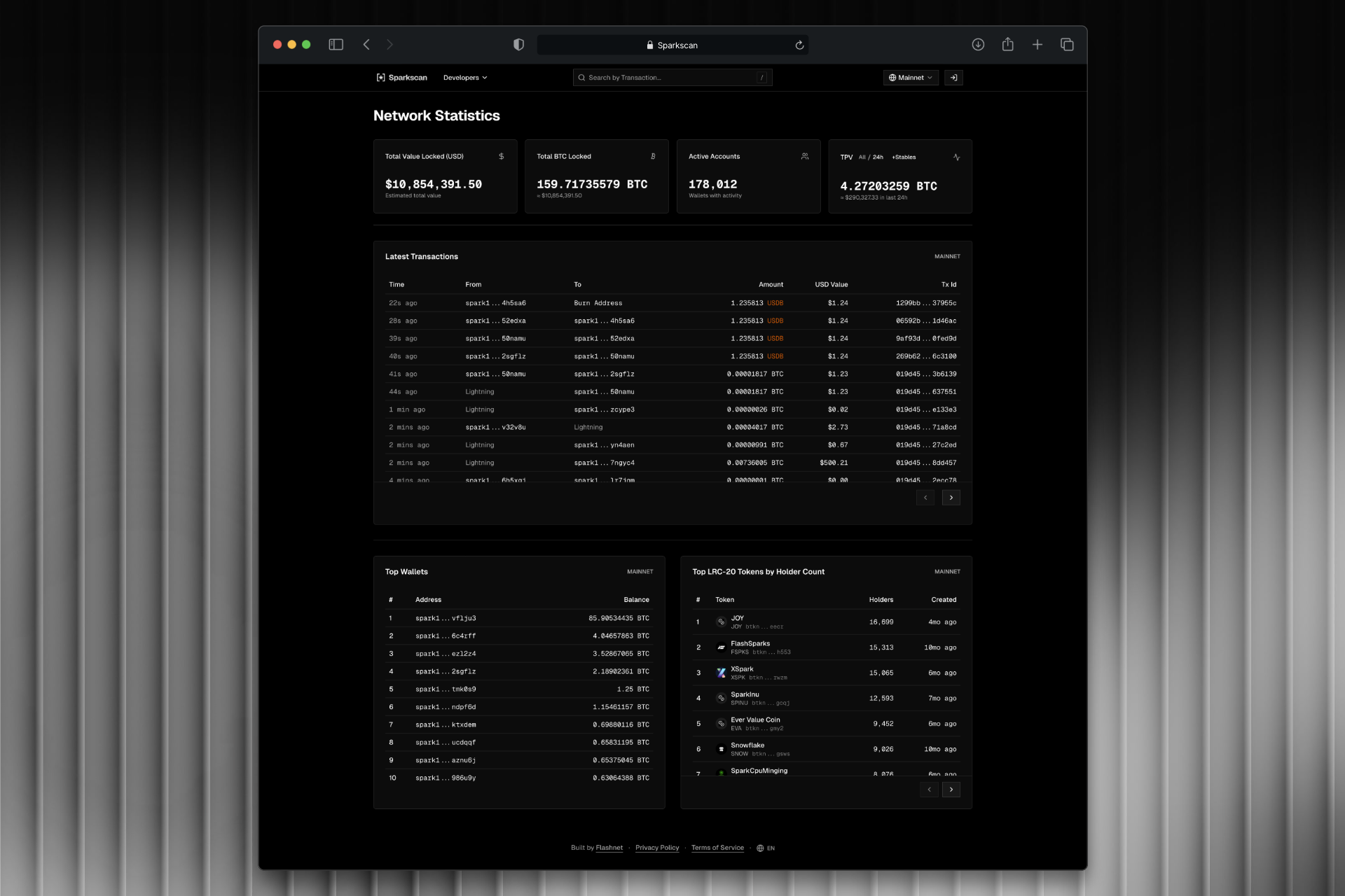 Block explorer and data engine for the Spark blockchain. Built a streaming pipeline from Kafka through RisingWave to ClickHouse, with a REST API serving geospatial analytics and chain data.