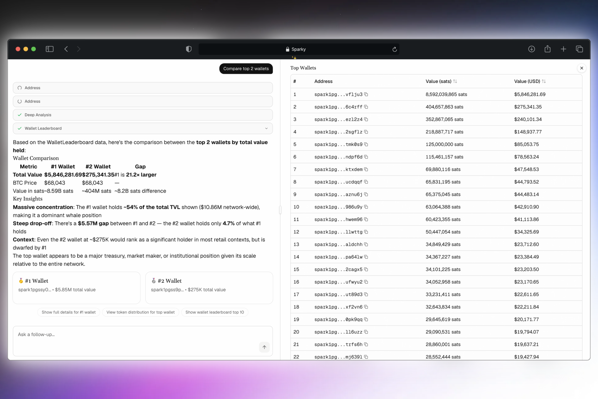 AI-powered conversational block explorer for the Spark blockchain. Orchestrates tool-use across multiple LLM providers, renders structured JSON into UI components, and handles streaming responses.